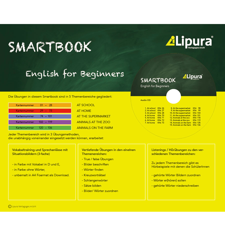 1 Kontrollbogen, 1 Audio CD mit Listenings, 21 Ausmalbilder A4, 1 Smartbox