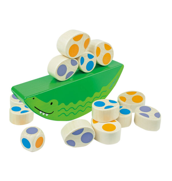 Balancierspiel mit Krokodil! Mama Krokodil beschützt die kleinen Alligatoreneier… Ein Geschicklichkeitsspiel, das insbesondere die Feinmotorik fördert. Es lassen sich verschiedene Spielvarianten mit steigenden Schwierigkeitsstufen spielen.