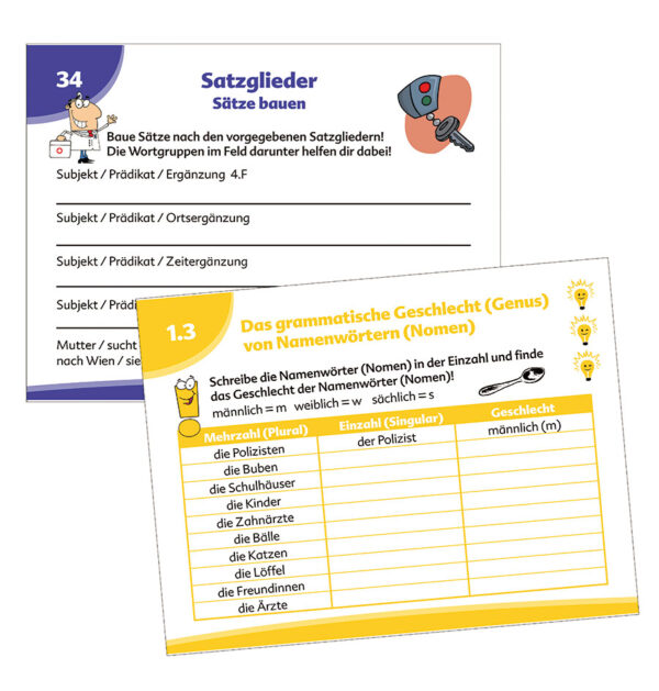 Kompetenztraining Grammatik IV ist die optimale Trainingskartei für SchülerInnen ab der 4. Klasse. Genauso passend ist die Box zur Wiederholung des Stoffes in der 5. und 6. Klasse.