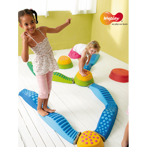 … Als Ergänzung mit den Regenbogenflusssteinen KT0008, Honey Hills KT0016 sowie den Balance Clouds KT0012 oder als eigenständiges Set sehr vielseitig einsetzbar. Acht Wellenwege die zum Kreis, zur Schlange oder versch. Fantasiewegen gelegt werden können helfen zur Schulung von Bewegungskoordination, Stabilität, Konzentration, Muskelaufbau, Geschicklichkeit, Kreativität und Balance. Die verschiedenen Oberflächenstrukturen aus Gummi sind fest mit dem hochwertigen Kunststoff verbunden und halten ein „Leben lang“, das gleiche Gummimaterial an der Unterseite sorgt für einen sicheren Stand. Ineinander gestapelt und in der mitgelieferten Tasche verstaut, ist die Flußsteinelandschaft platzsparend weg geräumt.