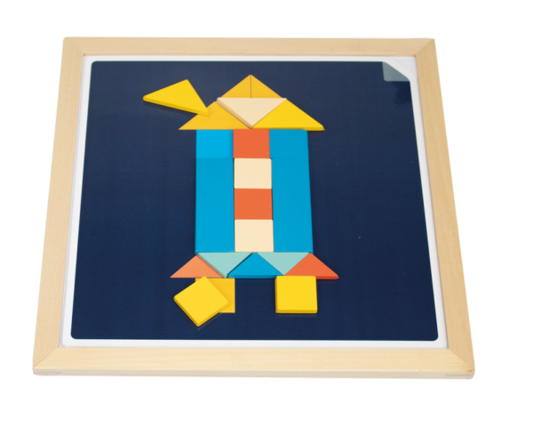 Erschaffe bunte Bilder mit geometrischen Formen. Die unterschiedlichen magnetischen Holzteile lassen sich durch viele Kombinationsmöglichkeiten zu neuen Formen anordnen.